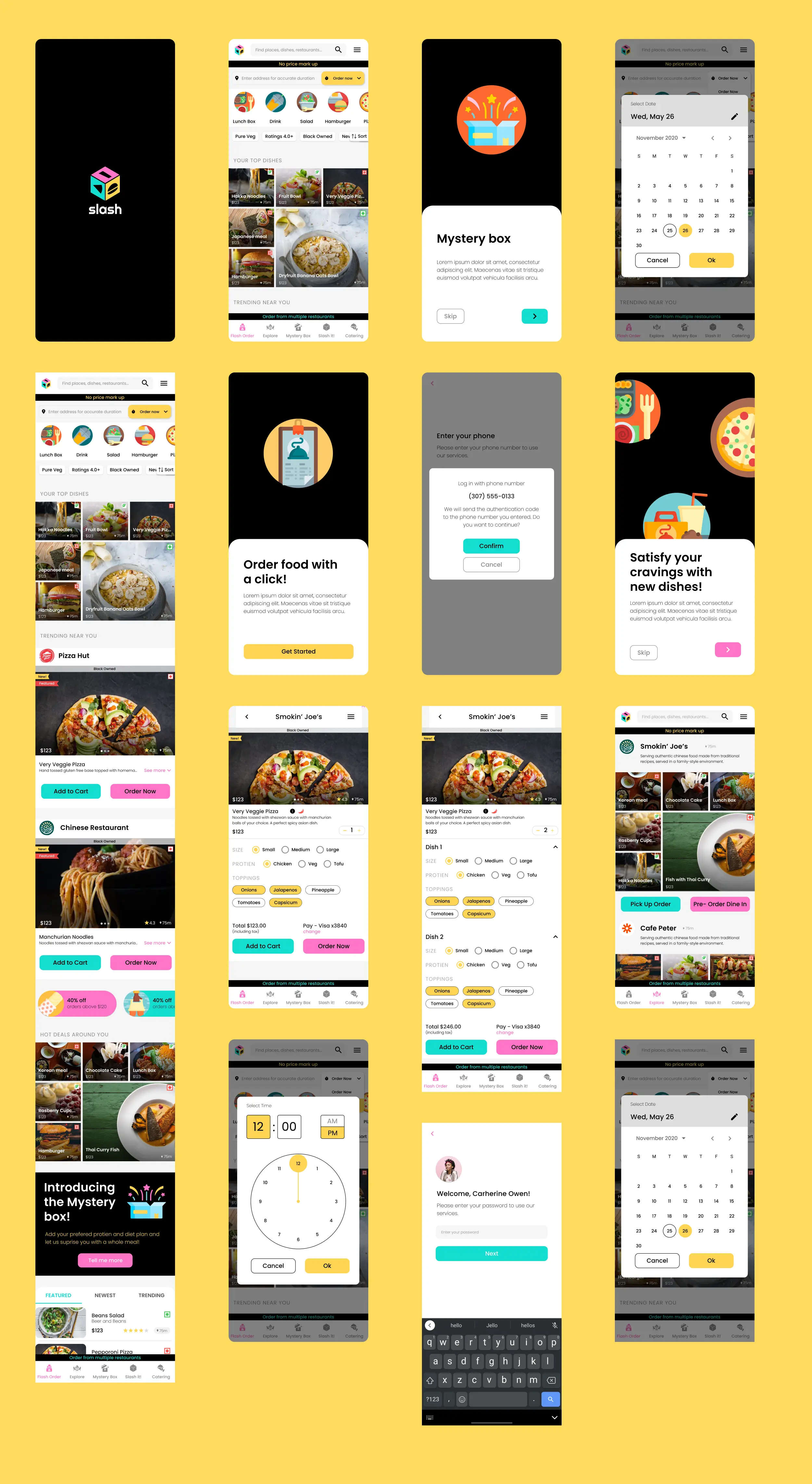 A vibrant mobile app design for Slash - Where Food Meets Convenience